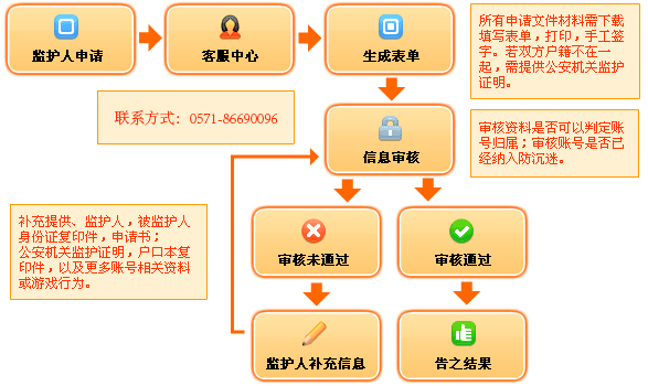 家长监护系统充分考虑家长的实际需求,当家长发现自己的孩子玩游戏过于沉迷的时候,由家长提供合法的监护人资质证明、游戏名称账号、以及家长对于限制强度的愿望等信息,可对处于孩子游戏沉迷状态的账号采取几种限制措施,解决未成年人沉迷网游的不良现象,如限制孩子每天玩游戏的时间区间和长度,也可以限制只有周末才可以游戏,或者完全禁止。
